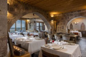 Named after the Turkish word for terrace, in Seki Restaurant you’ll able to enjoy alfresco cuisine as you overlook the region’s famed fairy chimneys. Seki has a huge terrace with sweeping views and is the most awarded restaurant in the Cappadocia region. The menu boasts local specialities, from slow cooked meat dishes, pastry-dishes filled with spiced pastirma (cured beef) and a Turkish ravioli called manti.