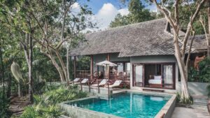 Located on a tropical hillside and overlooking the Gulf of Thailand with outlying islands, Kamalaya’s accommodation options vary from cosy Hillside Rooms to open Suites, spacious Villas, and Private Pool Villas.