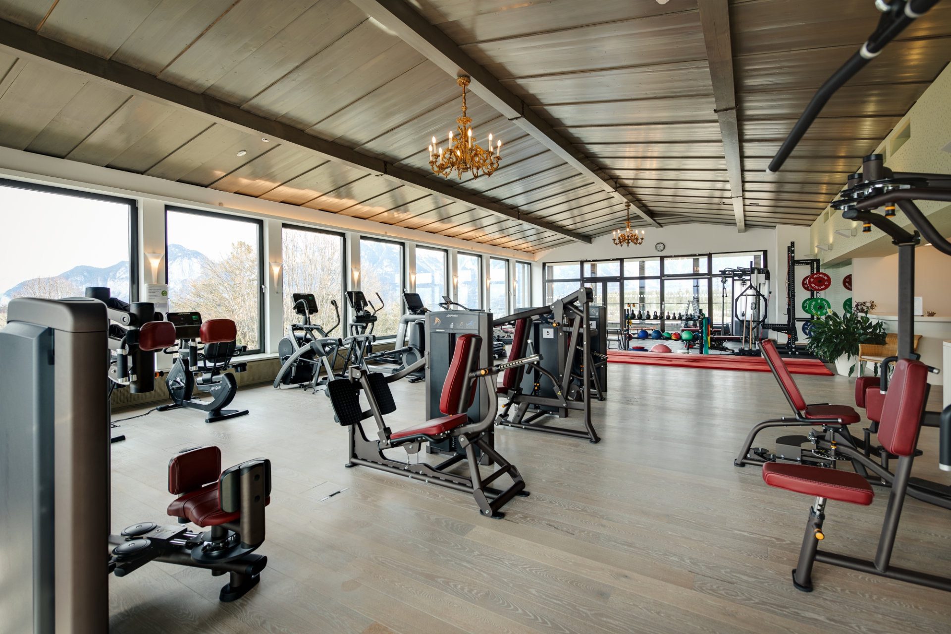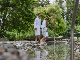The spa facilities include an indoor pool with fully opening doors, panoramic views, numerous saunas and steam experiences, a Kneipp hydrotherapy circuit, infrared cabins, and a well-equipped gym. Guests are encouraged to connect with nature through daily guided walks, forest bathing, and outdoor fitness sessions that take advantage of the invigorating alpine climate. There is a choice of over 40 activities per week from yoga, fitness classes, mountain hiking and cookery sessions, to and skiing and snow-shoeing in winter.