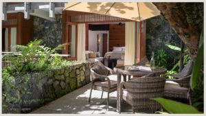The Dining Room, located beside the resort’s main pool with backdrop of giant fig trees, offers everything from international breakfasts and made-to-order juices to candle-lit ten-course menus accompanied by a hand-picked selection of wines.